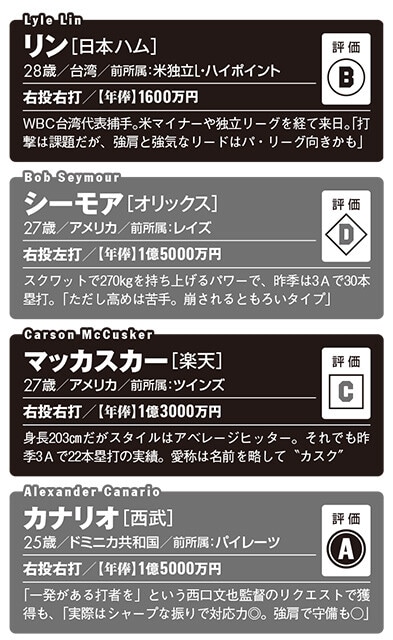 西武のアラン・ワイナンス、阪神のダウリ・モレッタも期待できそうだという。