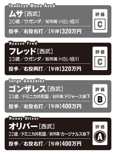 アジアの剛腕、メジャー史上最高身長選手、〝ゴリラパワー〟に〝金の卵〟。多彩な面々がそろった今年の新外国人選手43人。