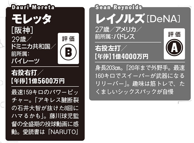 モレッタはパワーピッチの右腕でカットボールがいい。低めへの制球も及第点です。リリーフで活躍しそうですね」(セ・リーグ某球団スコアラー)
