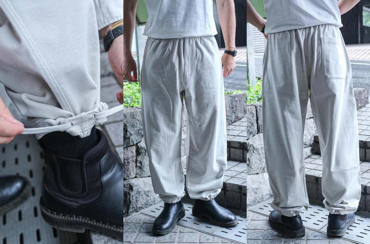 裾にドローコードが配されているので、キュッと絞って穿くことでスポーティな雰囲気に。着るアイテムに合わせて着こなしを楽しめますね。