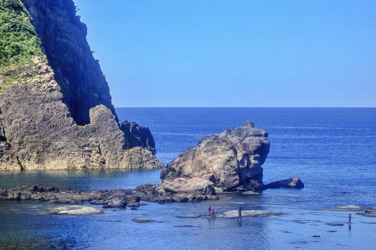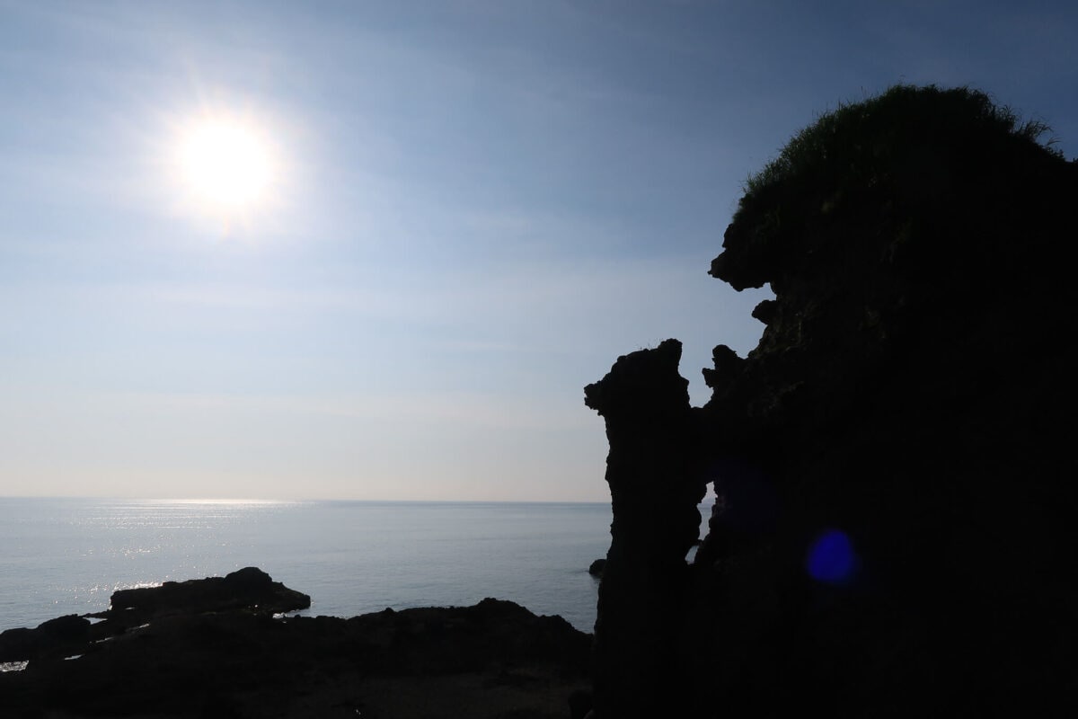 年々熊害報道が多くなっています。人里に降りてきた熊。いろいろとご意見あるかと思います。イメージはどんどん怖いものになりつつありますが、まあ身勝手なことを言えば、安全な位置から見る熊、とくに子熊の可愛さにはやはりキュンとなりますわな。そんな、かわいい子熊が母さん熊に甘えて「ハイハイ、なあに?」とあやされているような姿が思い浮かぶ岩がこちら。北海道せたな町の「親小熊岩」です。これは素晴らしい。写真を撮るときは、やはりシルエットになる時間がおすすめですが、日中でも、トリミングして熊らしく見える部分だけ撮るとより良い感じに撮れると思いますよ。