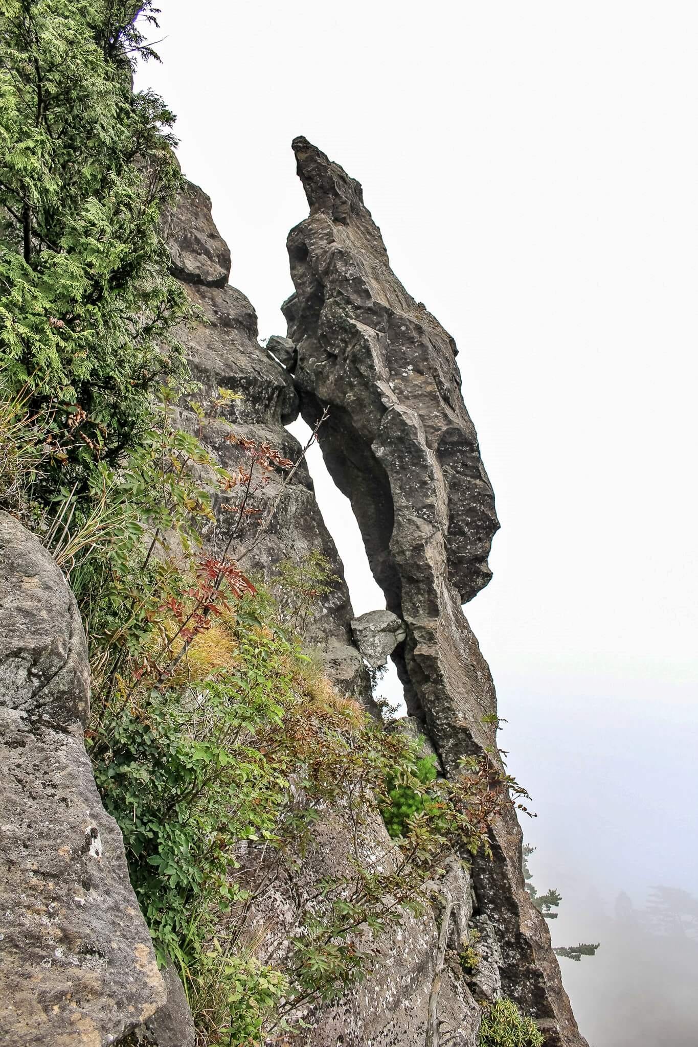 島根県の北、日本海上に浮かぶ隠岐の島。七類港、もしくは境港港から2、3時間の船旅で行くことができます。隠岐の島で有名な岩と言えば「ローソク島」で、これは海に浮かぶ縦に細長い岩。その先端に沈む夕日が重なって、ローソクに火が付いたような幻想的な光景が見られます。・・・じゃなくて!今回見てほしいのは「トカゲ岩」。まるで垂直の岩を登るトカゲのような岩。ほんとのトカゲならへっちゃらなんでしょうけど、これは岩です。だから今にも落ちそうな姿にハラハラ。頭から尻尾の先までで26mの長さ。尻尾の部分が大岩部分とつながっている状態で、長い浸食によりこうなったのではないかと言われています。近くで見るには本格的な登山装備とガイドの同行が必要ですが、そこまで行かなくても展望所からしっかり見ることができます。