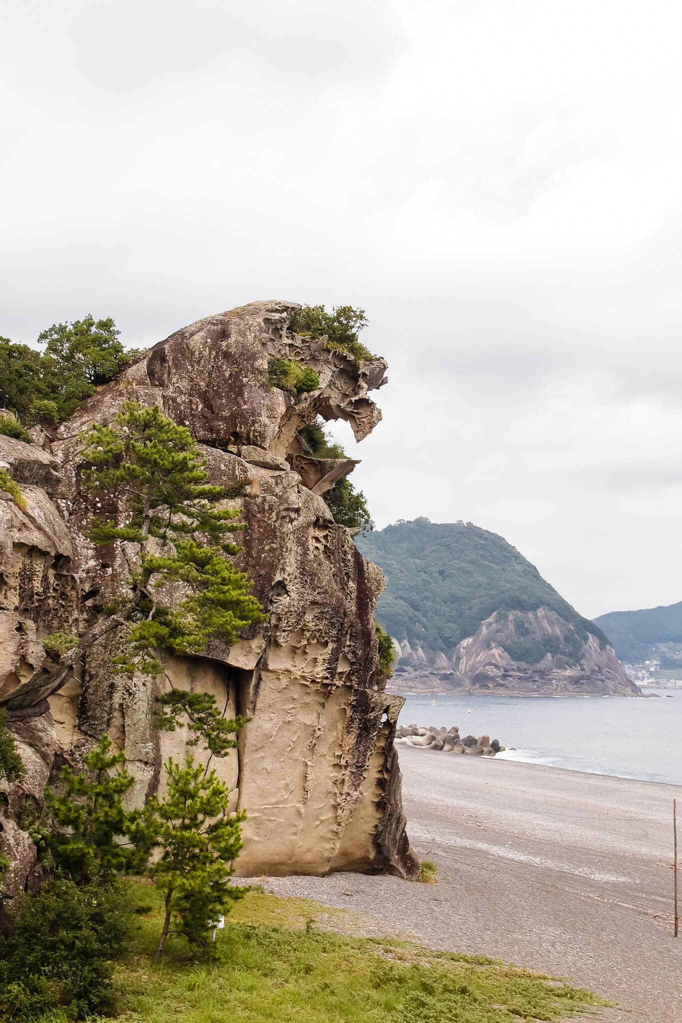 兵庫県の日本海側、香美町の今小浦海水浴場に浮かぶカエルのような形の岩。地元では「かえる島」と呼ばれ親しまれているとか。そしておっぱい岩と同じくやはりご利益祈願(奇岩?)のスポットになっているのです。古くは北前船で航海に出た人たちが、「無事帰る」ことを祈願していたようで、今でも「失くしたものが帰る」「若返る」「運気を変える」などたくさんの「かえる」を望む人が訪れています。