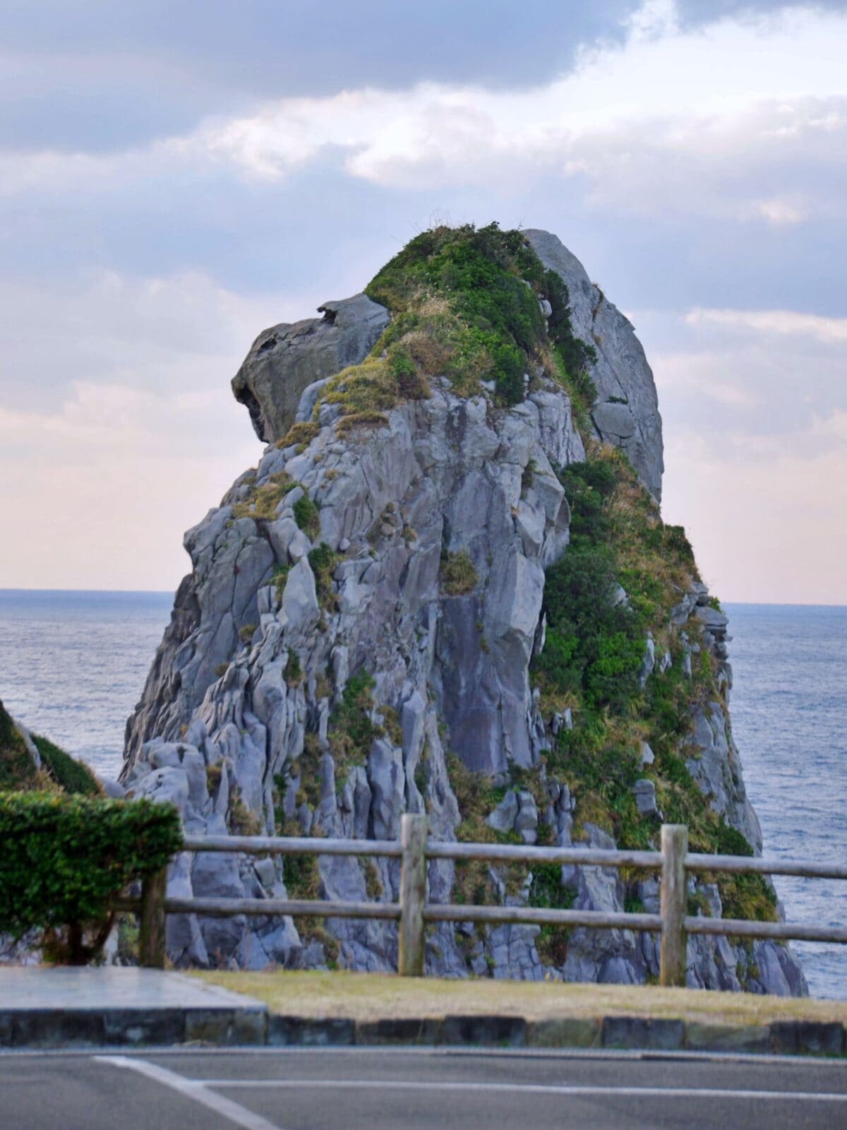 最後はわたくしチョイス。個人的には日本の「●●岩」の中でナンバーワンじゃないかと思っております。それが長崎県の壱岐島にある「猿岩」。実はある時、ある仕事で壱岐島内をママチャリで走りまくったことがあるのですが、バッテリーの切れたクソ重い電動ママチャリで、坂道を登った先に猿岩が現れた瞬間の感動は忘れられません。これは見る価値のある岩です。なんせ大きさも十分なのです。大きさと形どちらも備えた岩はなかなかありませんから。見れば「うわ・・・猿すぎる……」と声が出ることでしょう。神話では壱岐島が流れてしまわないように神様が建てた「八本柱」の一つと言われているそうです。夕暮れ時には、お猿さんが沈む夕陽を見つめる姿を見ることができます。