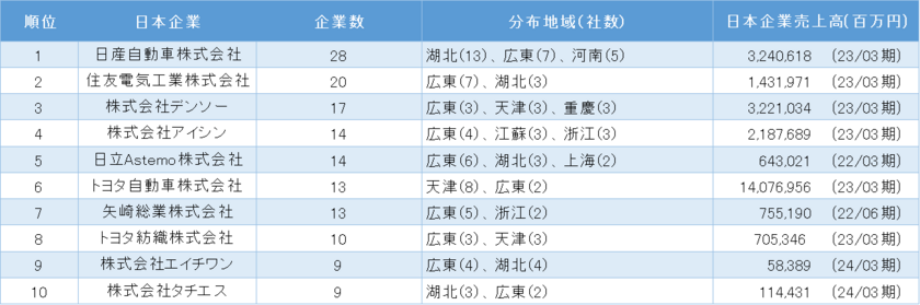 調査名:中国における日系自動車製造業の市場動向調査方法:中国における日系企業の法人登記情報の調査