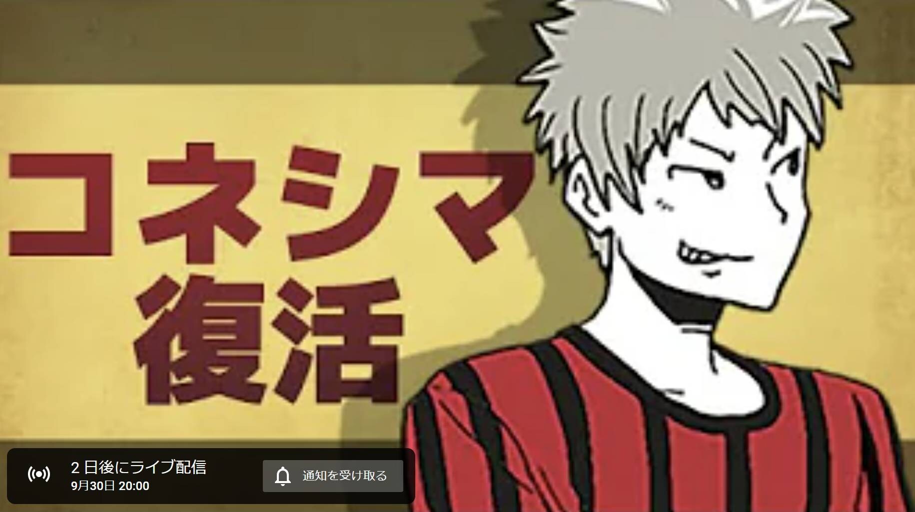 9月28日、我々だは「コネシマ、復活します」と題した配信を9月30日に実施すると予告しました。